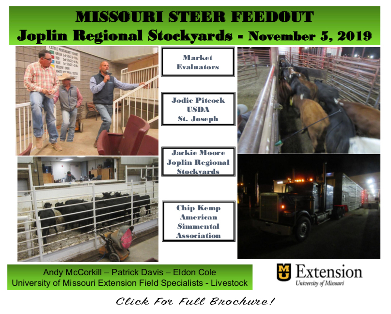 2020 Missouri Steer Feedout - The feedout will be held in cooperation with the Tri-County Steer Carcass Futurity (TCSCF) Lewis, Iowa. Seven different feedlots participate and Iowa State extension personnel supervise the program along with the TCSCF board. Past Missouri Steer Feedouts Missouri Steer Feedout Finale July 2, 2019 Missouri Steer Feedout Program 2017-2016 Brochure
